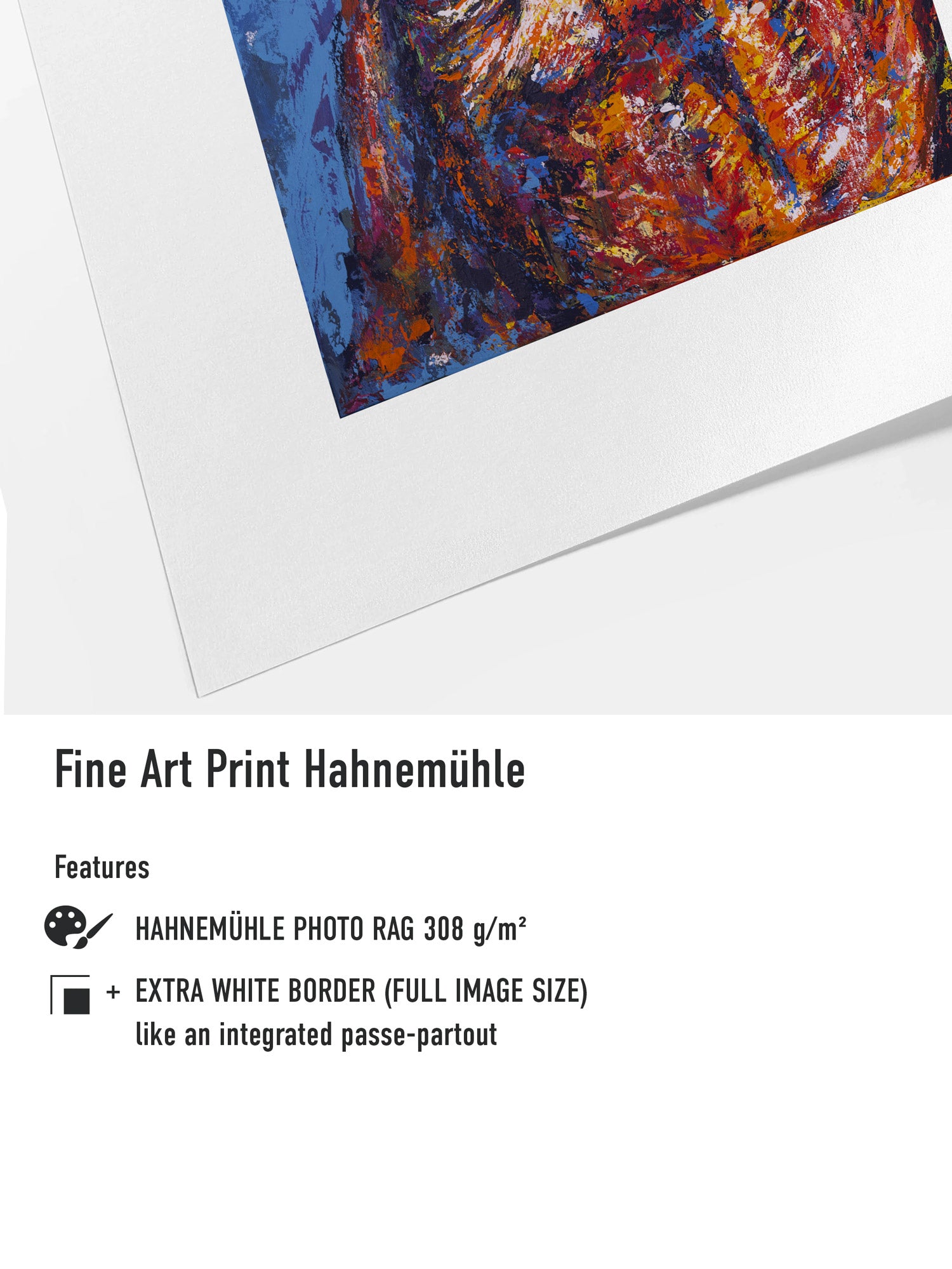 Der breite Weißrand schützt das vollständige Motiv, sorgt für maximale Rahmungsfreiheit und gewährleistet jedem Werk die Anmutung echter Galerie- und Museumsqualität.
