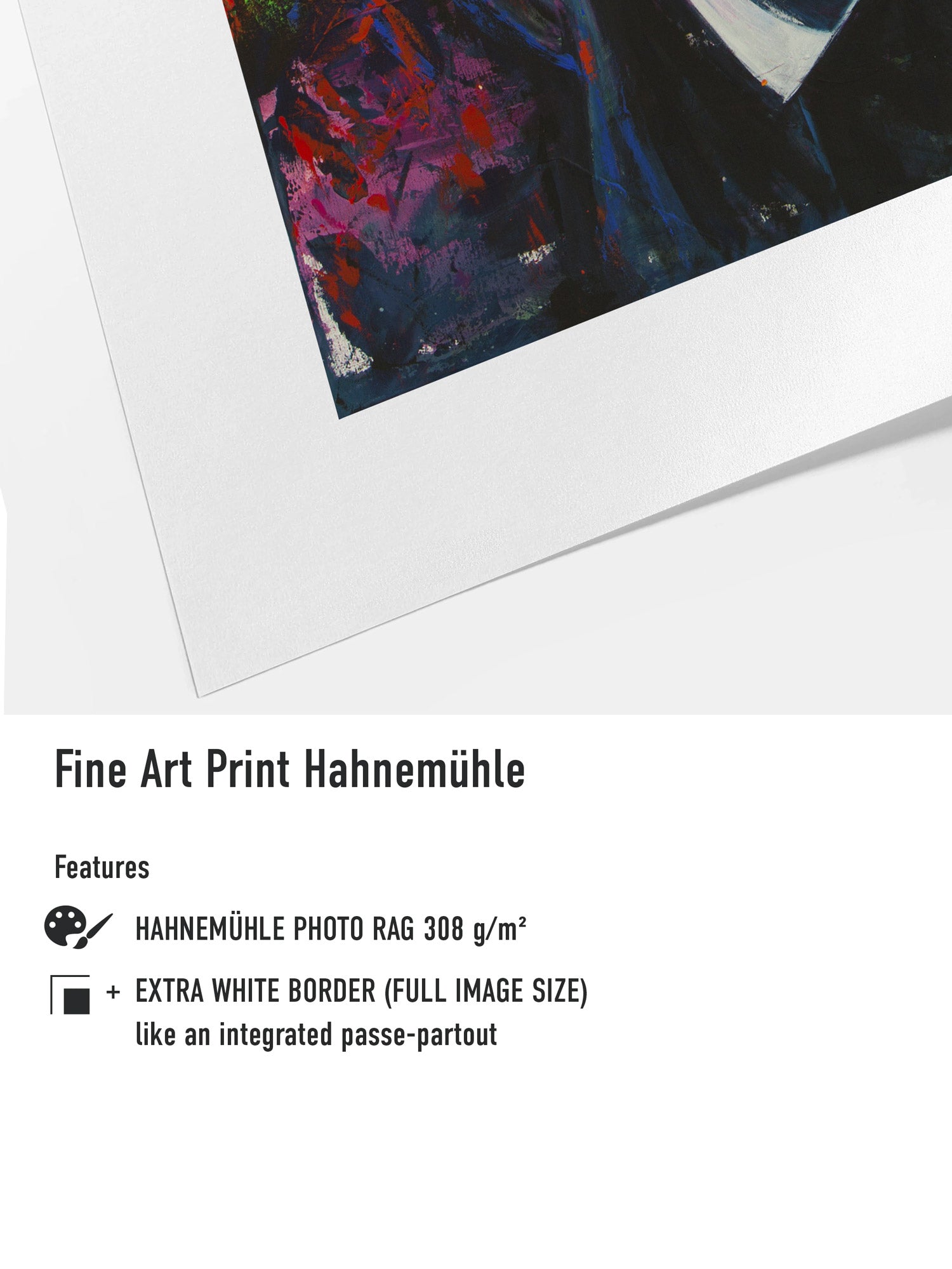 Der breite Weißrand schützt das vollständige Motiv, sorgt für maximale Rahmungsfreiheit und gewährleistet jedem Werk die Anmutung echter Galerie- und Museumsqualität.