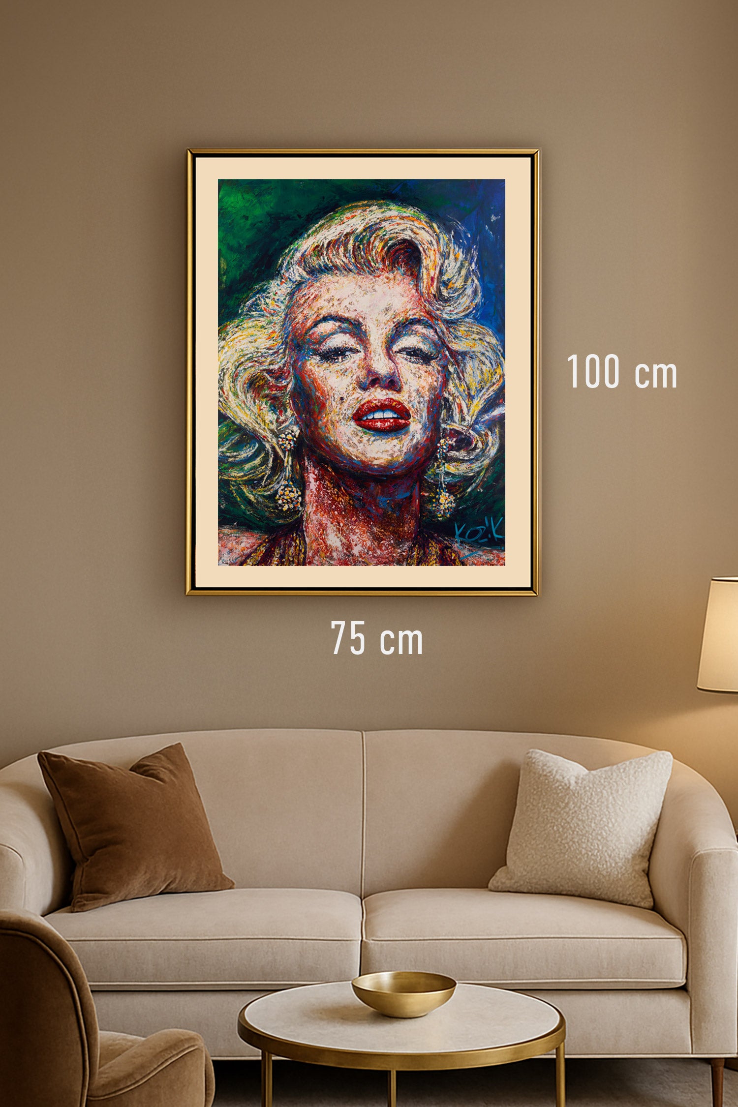 Dieses Kunstwerk zeigt Marilyn Monroe in einer neuen, berührend menschlichen Perspektive. Im Stil des Empathismus verbindet Marcel Kozik Struktur, Tiefe und Emotion zu einem facettenreichen Porträt jenseits des Glamours.