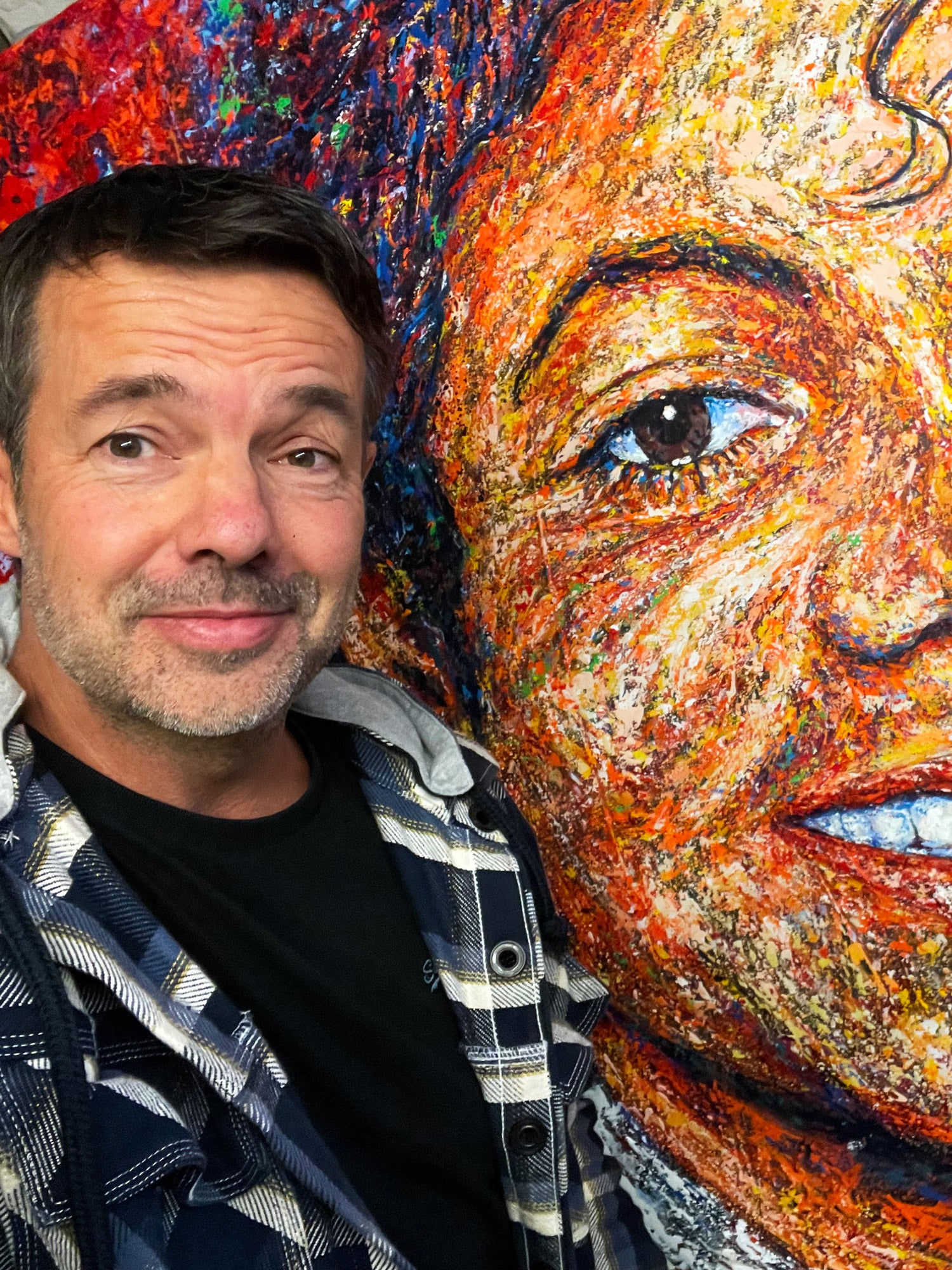 Durch die charakteristische Spachteltechnik und den schichtweisen Farbauftrag wird sichtbar, was sonst verborgen bleibt – die kreative Kraft, der innere Konflikt und die leise Melancholie eines Menschen, dessen Leben von Höhen und Tiefen geprägt war wie kaum ein anderes.